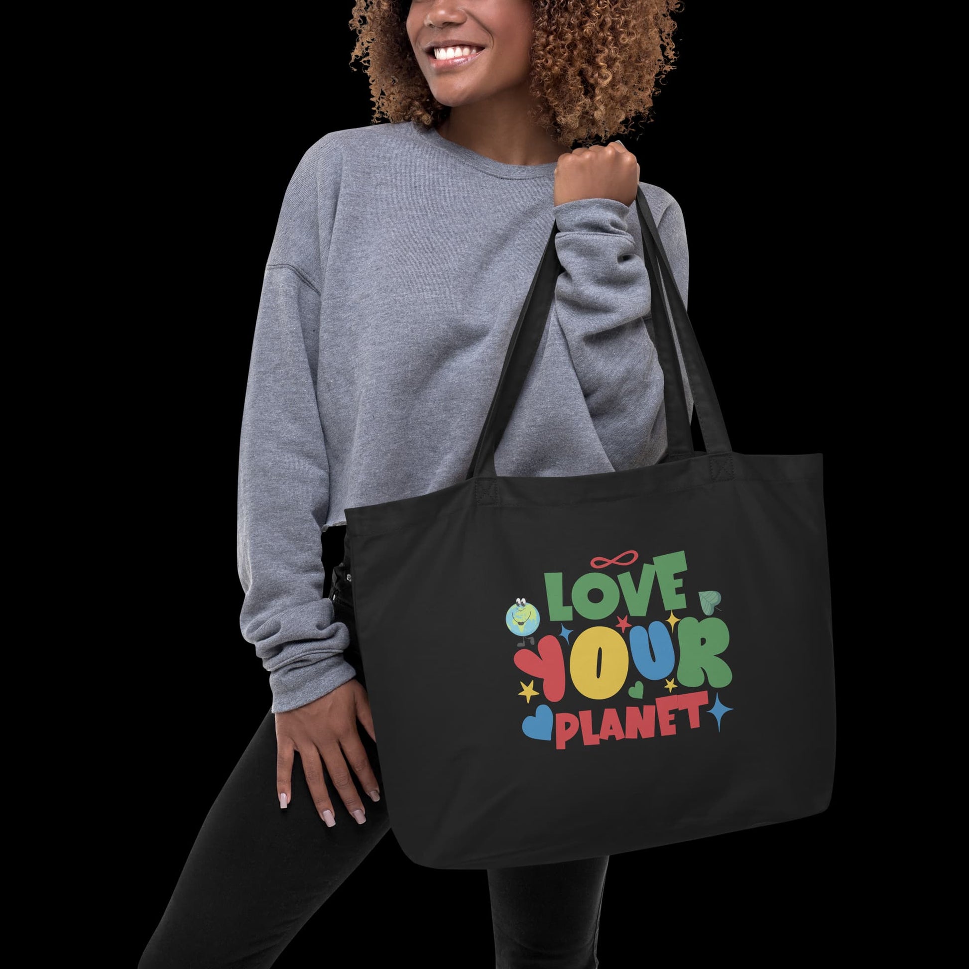 Carry your commitment to the environment in style with this vibrant “Love Your Planet” tote bag. Featuring a playful, colorful design with bold lettering and a cheerful earth mascot, this sturdy and reusable tote is perfect for eco-conscious shoppers who want to reduce plastic waste while making a positive statement.